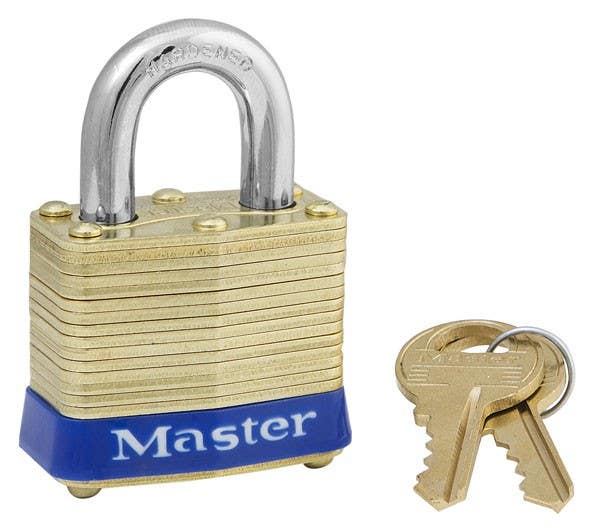 Details: Master Lock 4 Non-Rekeyable Laminated Brass Pin Tumbler Padlock 1-9/16" (40mm)