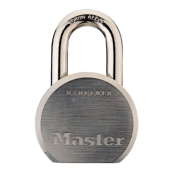 The Master Lock Solid Body Padlock features a 2-1/2in (64mm) wide solid steel lock body that is strong, durable and resists corrosion. The 7/16in (11mm) diameter shackle is 1-1/8in (29mm) long and made of hardened boron alloy, offering maximum resistance to cutting and sawing. The 5-pin cylinder prevents picking and can be removed to rekey the lock. The Limited Lifetime Warranty provides peace of mind from a brand you can trust.