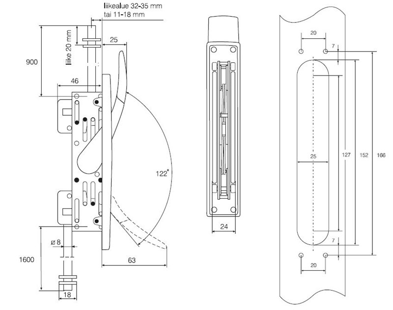 Quick bolt DF3001/DF3101. When in closed position, the door will only open by using the handle. The handle has a guiding sticker. The bolt has a quick fastening mechanism to make installation easier. In the basic versions DF3001 and stainless steel version DF3101 the installation depth is 46 mm.
