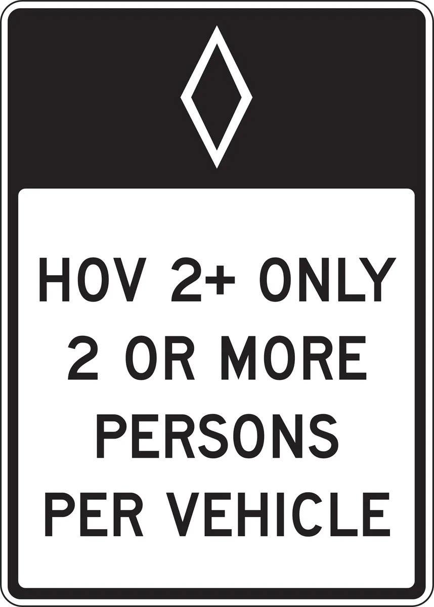 Details: AccuformNMC FRR663 HOV Sign, HOV 2+ Only 2 Or More Persons Per Vehicle, 42" H x 30" W