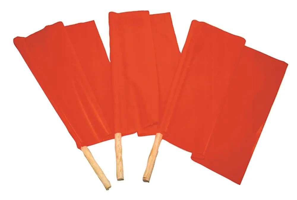 • Brightly-colored red/orange flags are mounted on 3/4" diameter wooden dowel. Water-repellent.