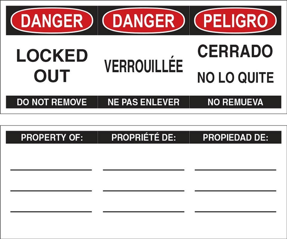 Details: AccuformNMC KDL80 Stopout, Plastic Padlock Danger Label, Locked Out, Do Not Remove, Adhesive Vinyl, 50/Pk