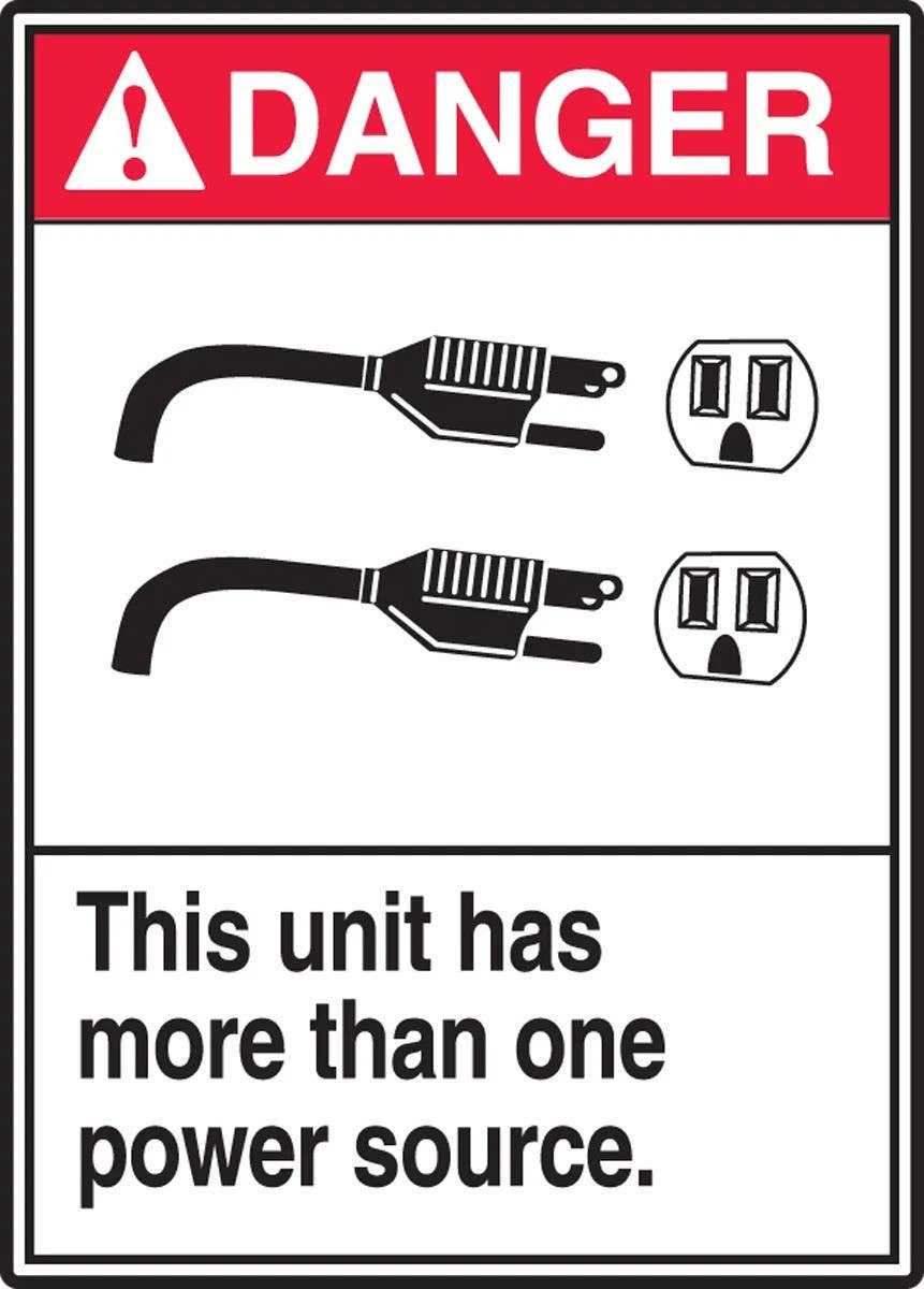 Details: AccuformNMC LELC637VSP ANSI Danger Safety Label, This Unit Has More Than One Power Source, Adhesive Vinyl, 5/Pk