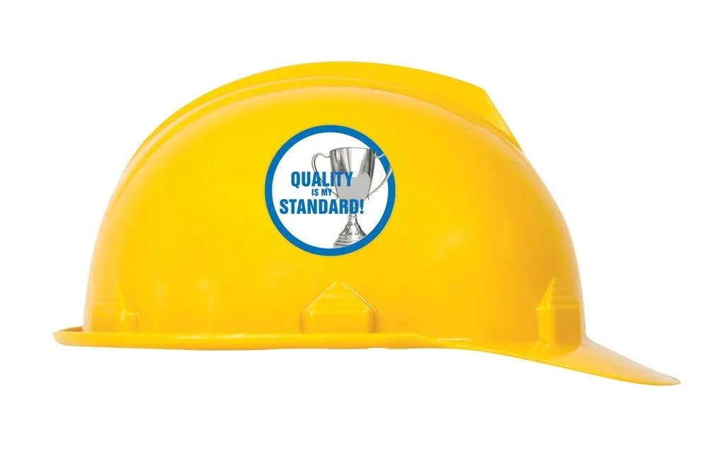 Remind others of your commitment to quality by affixing this decal on your hard hat.