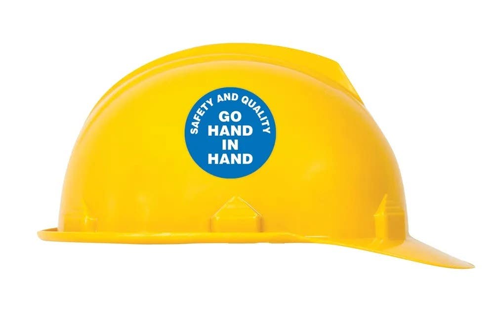 • Safety And Quality Go Hand In Hand sticker measures 2-1/4 inches