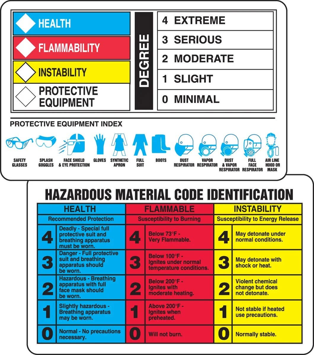 • Color-printed plastic, HMCIS multi-bar with hazard rating codes in the front