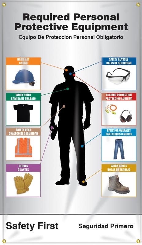 AccuformNMC MBR409 Construction Site PPE-ID Sign, Required Personnel Protective Equipment, Reinforced Vinyl, 43" H x 28" W