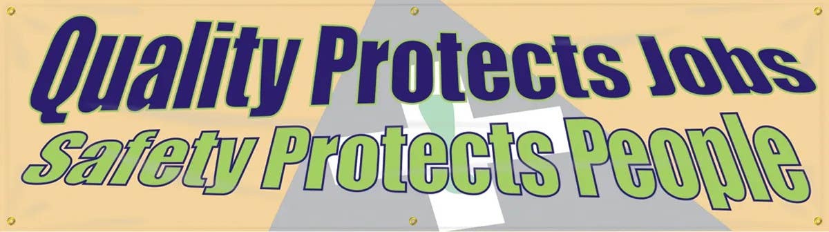 Banners are a great motivation tool for your employees. Convey your company's commitment to safety and quality as a priority in and around your facility. They help to enhance the launch, support and spread of an existing safety message or quality control program.