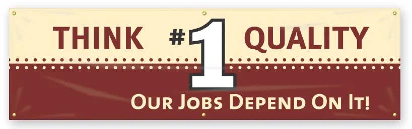 Details: AccuformNMC MBR928 Safety Banners, Think Quality 1, Our Jobs Depend On It, 28" H x 8' W