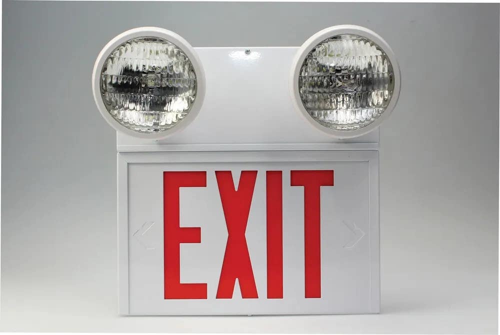 Details: AccuformNMC PLC450 Combination Emergency Lighted Exit Sign w/ Round Emergency Lights