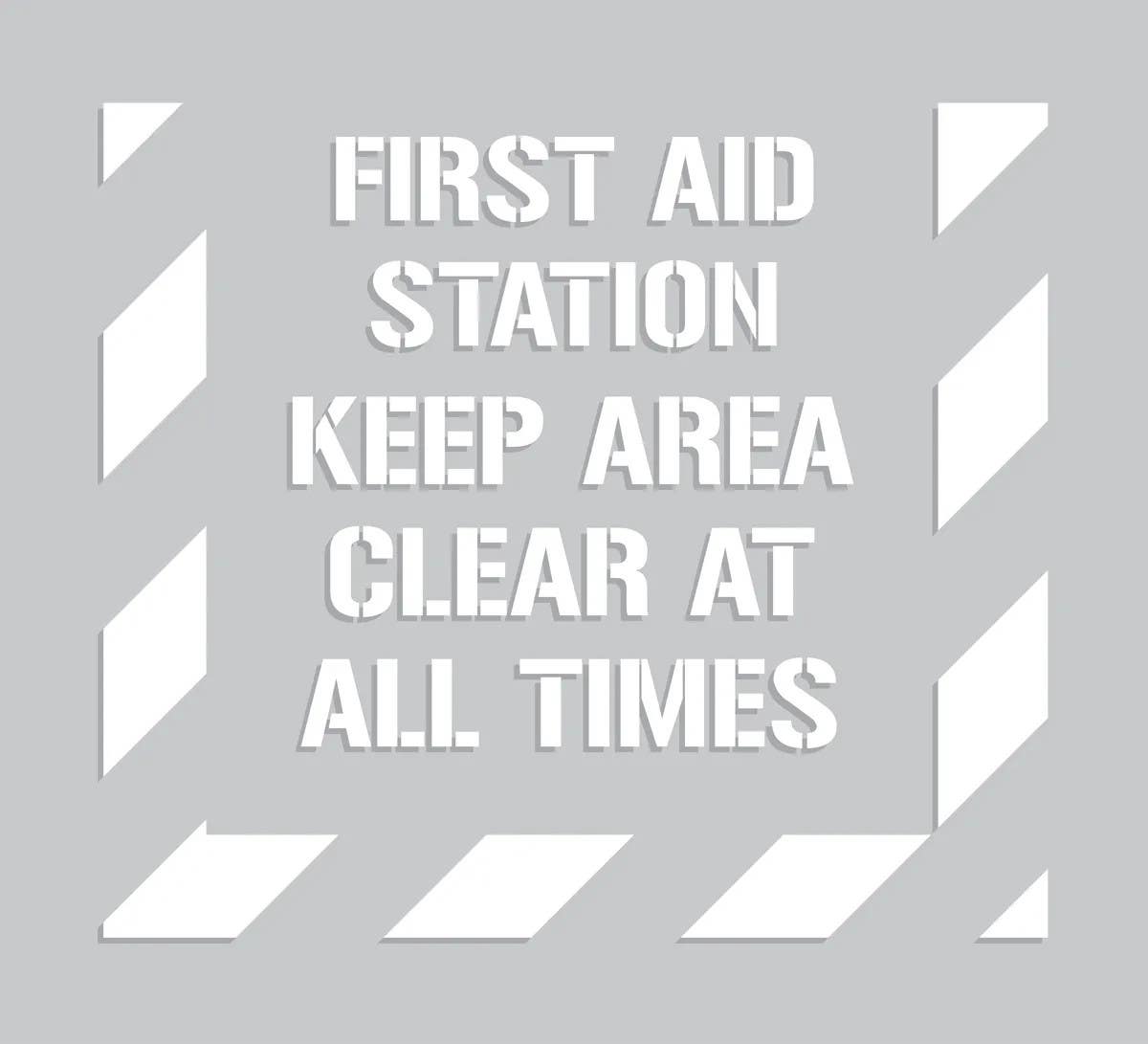 Details: AccuformNMC PMS330 Floor Marking Stencils, First Aid Station, Keep Area Clear, 44" H x 40" W
