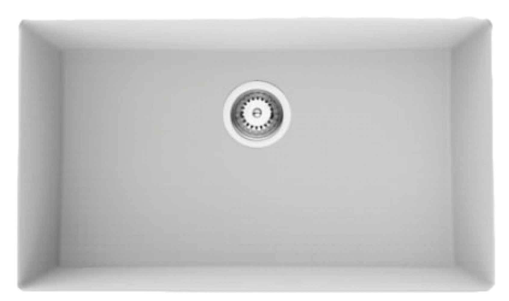 Details: American Imaginations 2ZQNK 25" White Granite Composite Kitchen Sink w/ 1 Bowl, Modern Style