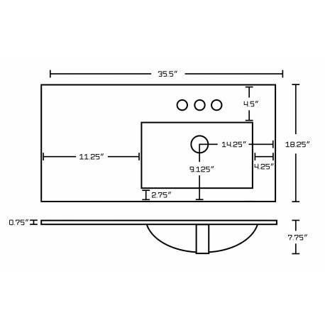• 0.75 in. Thick profile rectangular white ceramic top.
