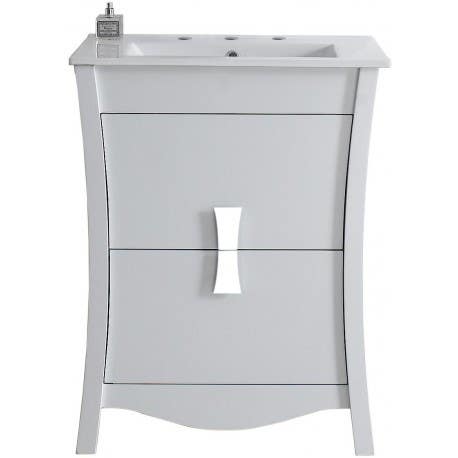 This modern vanity set belongs to the exquisite Bow design series. It features a rectangle shape. This vanity set is designed to be installed as a floor mount vanity set. It is constructed with birch wood-veneer. This vanity set comes with a lacquer-paint finish in White color. It is designed for a single hole faucet.