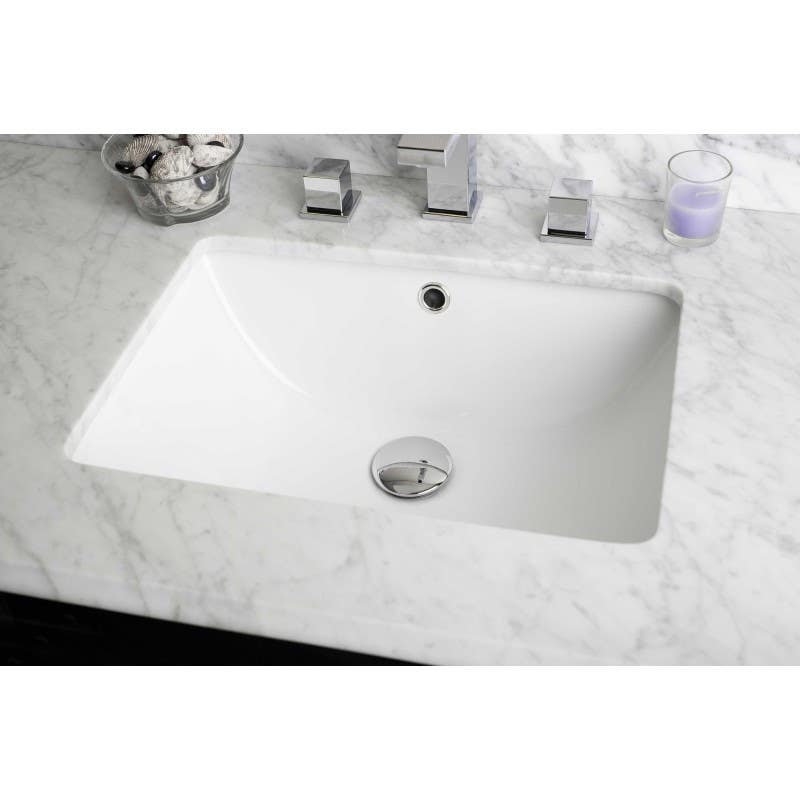 • Undermount sink has inside dimensions of 16.5 in. X 11.75 in. And an outside dimension of 18.25 in. X 13.5 in. Premium biscuit glaze for a glossy finish with a kiln dried ceramic construction.