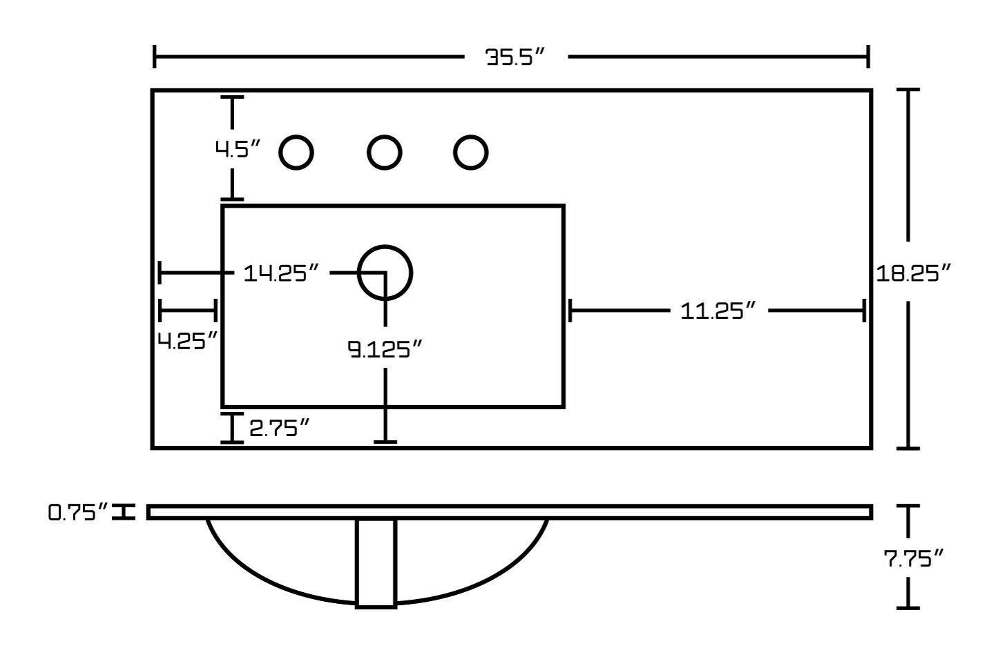 • This vanity set is designed for a 3h8-inches faucet and the faucet drilling location is on the center