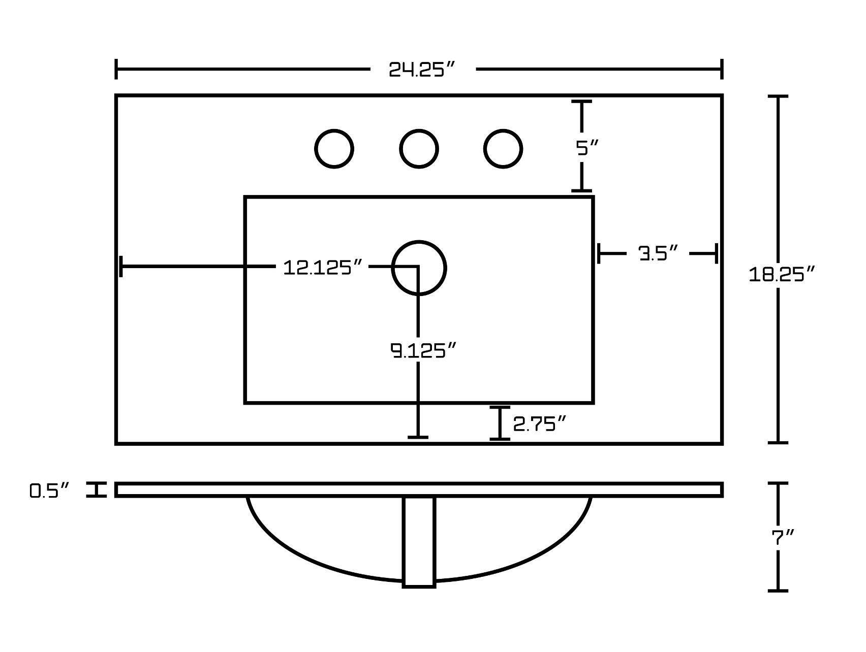Details: American Imaginations AI-23523 24.25-in. W 3H8-in. Ceramic Top Set In White Color - Overflow Drain Incl.