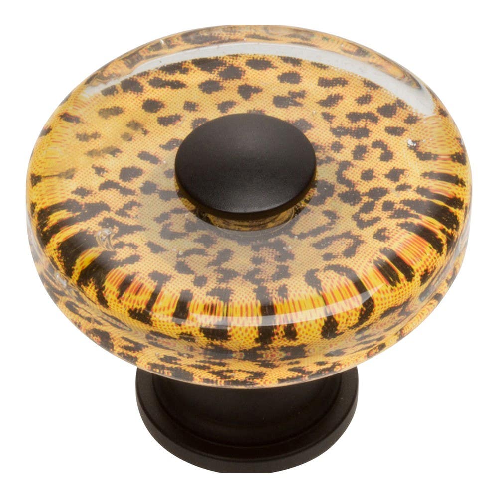Details: Atlas 3231-BL Cheetah Glass Round Knob, 1-1/2", Matte Black