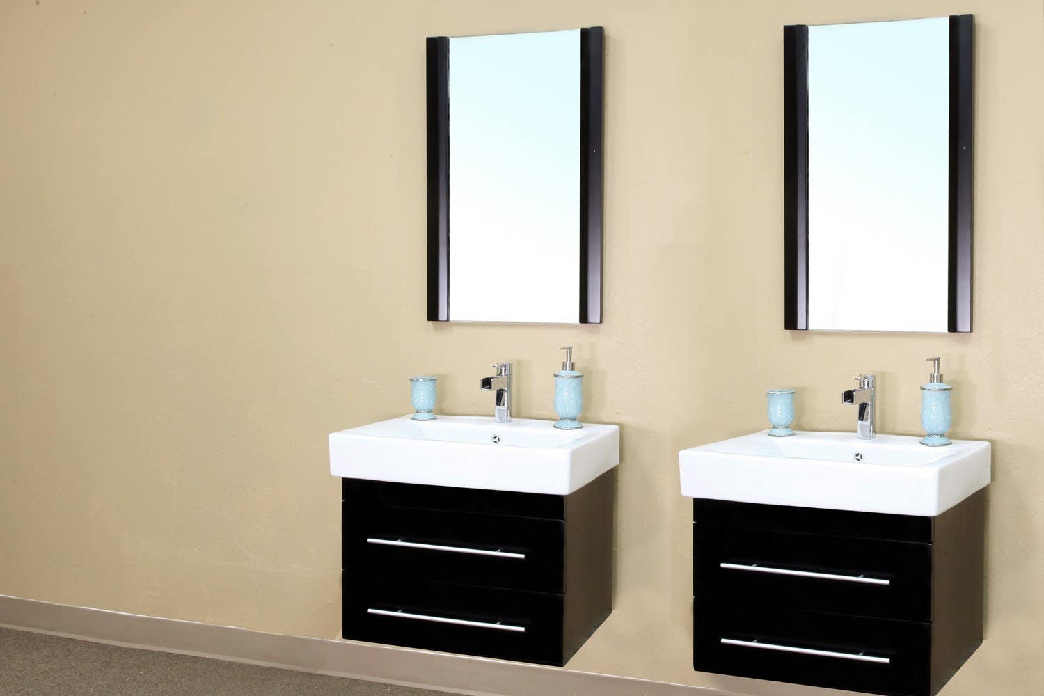 Details: Bellaterra 203102 48.5 In Double Wall Mount Style Sink Vanity-Wood-Black - 48.5x18.9x20"