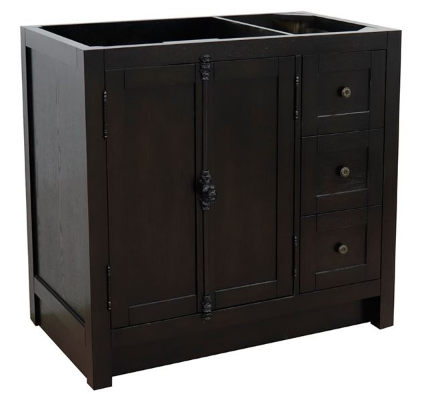 Details: Bellaterra 400100-36L-BA 36" Single Vanity In Brown Ash Finish - Cabinet Only - Left Doors