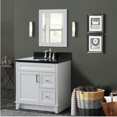 Details: Bellaterra 400700-37L-WH 37" Single Sink Vanity in White Finish Left Door/Center Sink