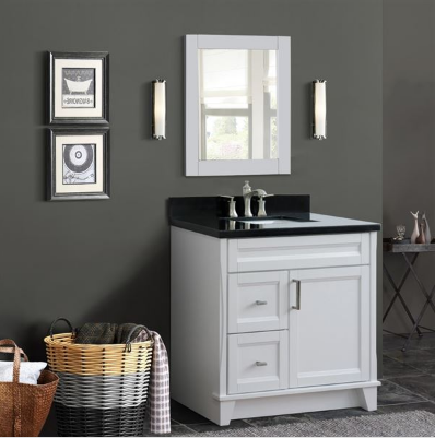Details: Bellaterra 400700-37R-WH 37" Single Sink Vanity In White Finish Right Drawers