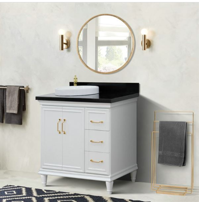 The Forli collection by Bellaterra Home features stunning bathroom vanities that can seamlessly integrate with any home design. The classic simplicity and elegance of this beautifully crafted piece of furniture will be the highly appreciated focal point in your bathroom. This vanity has three drawers and two cabinet doors that opens to a large ample storage space. The drawers are constructed with English dovetail and are installed with smooth full extension glides to provide durability. This vanity features gold finish hardware and a beautiful counter top that is pre-sealed and polished for added protection. The bathroom vanity top is preinstalled with a white cUPC certified ceramic sink.