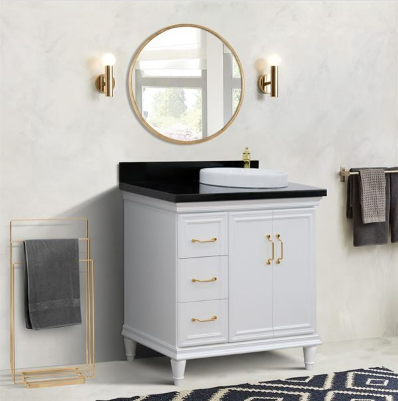 The Forli collection by Bellaterra Home features stunning bathroom vanities that can seamlessly integrate with any home design. The classic simplicity and elegance of this beautifully crafted piece of furniture will be the highly appreciated focal point in your bathroom. This vanity has three drawers and two cabinet doors that opens to a large ample storage space. The drawers are constructed with English dovetail and are installed with smooth full extension glides to provide durability. This vanity features gold finish hardware and a beautiful counter top that is pre-sealed and polished for added protection. The bathroom vanity top is preinstalled with a white cUPC certified ceramic sink.