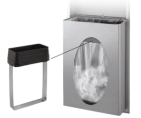 LinerMate improves restroom appearance by securing trash bag into waste receptacle for a flush, out-of-sight fit.