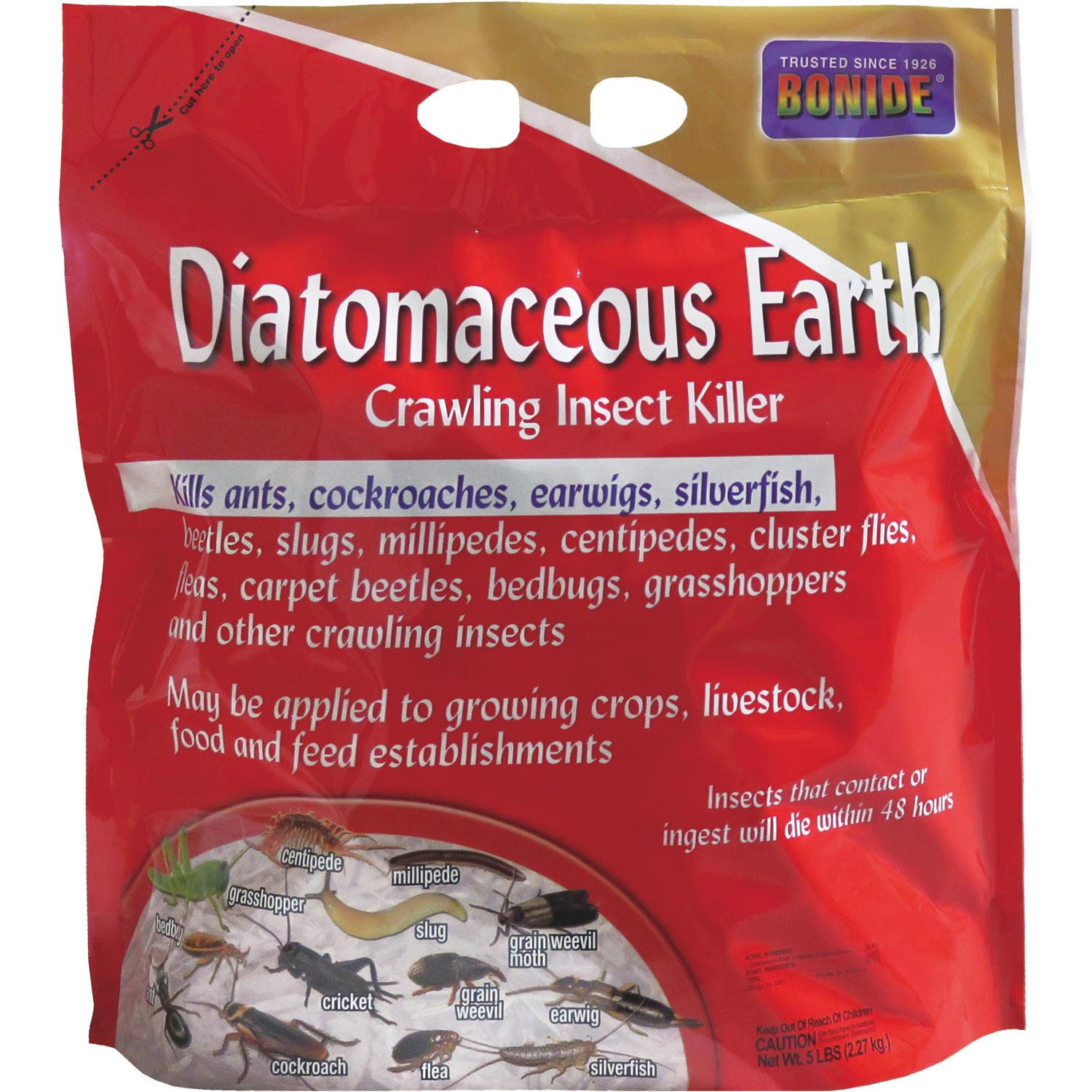 Bonide Diatomaceous Earth is used for insect control. It can be used both indoors and outdoors. Works within 48-hours by contact and ingestion. A natural option for killing crawling insects.