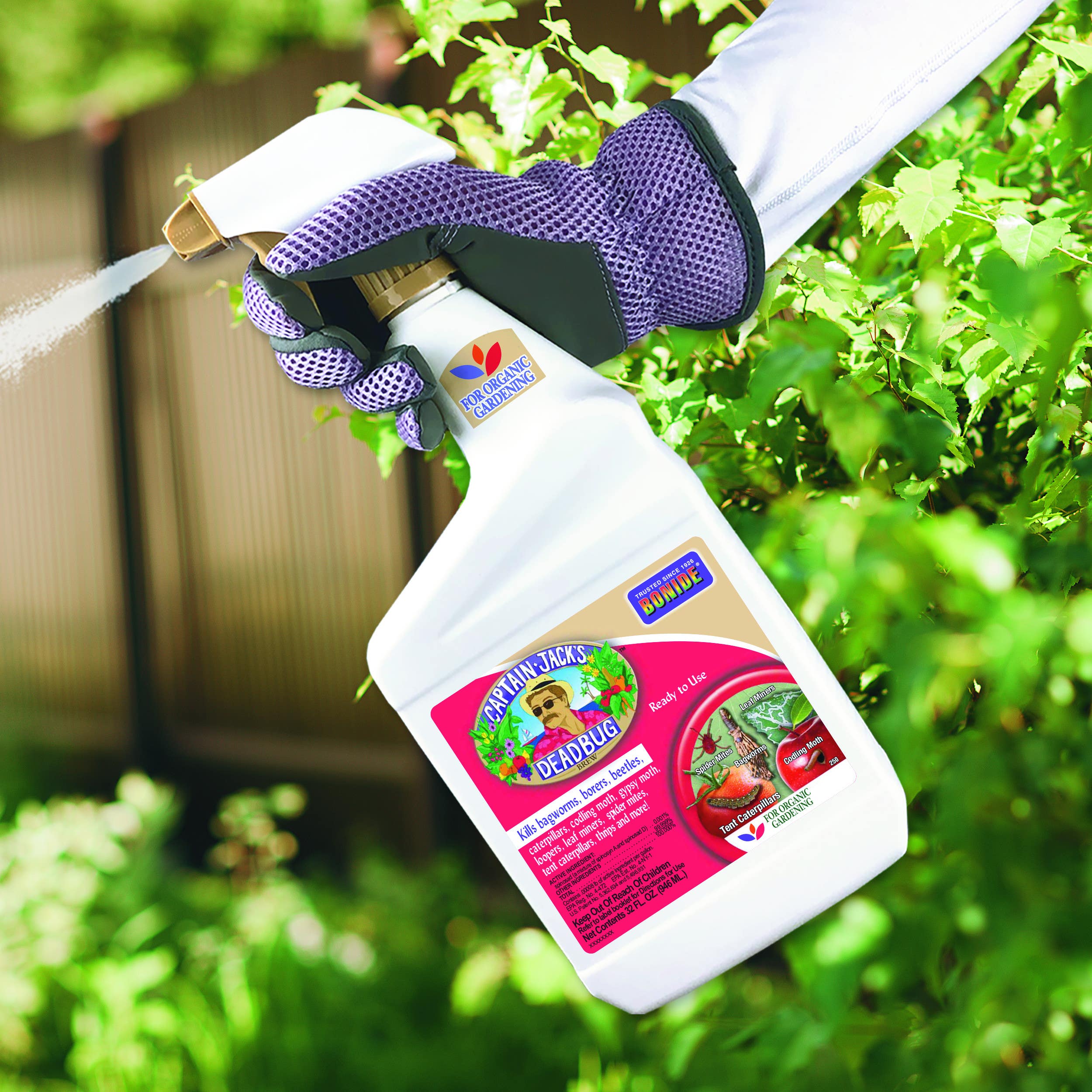 BONIDE Captain Jack's Deadbug Brew is approved for organic gardening to control a wide range of listed insect pests. Use on listed vegetables, citrus, fruits flowers, and ornamentals. Contains Spinosad.