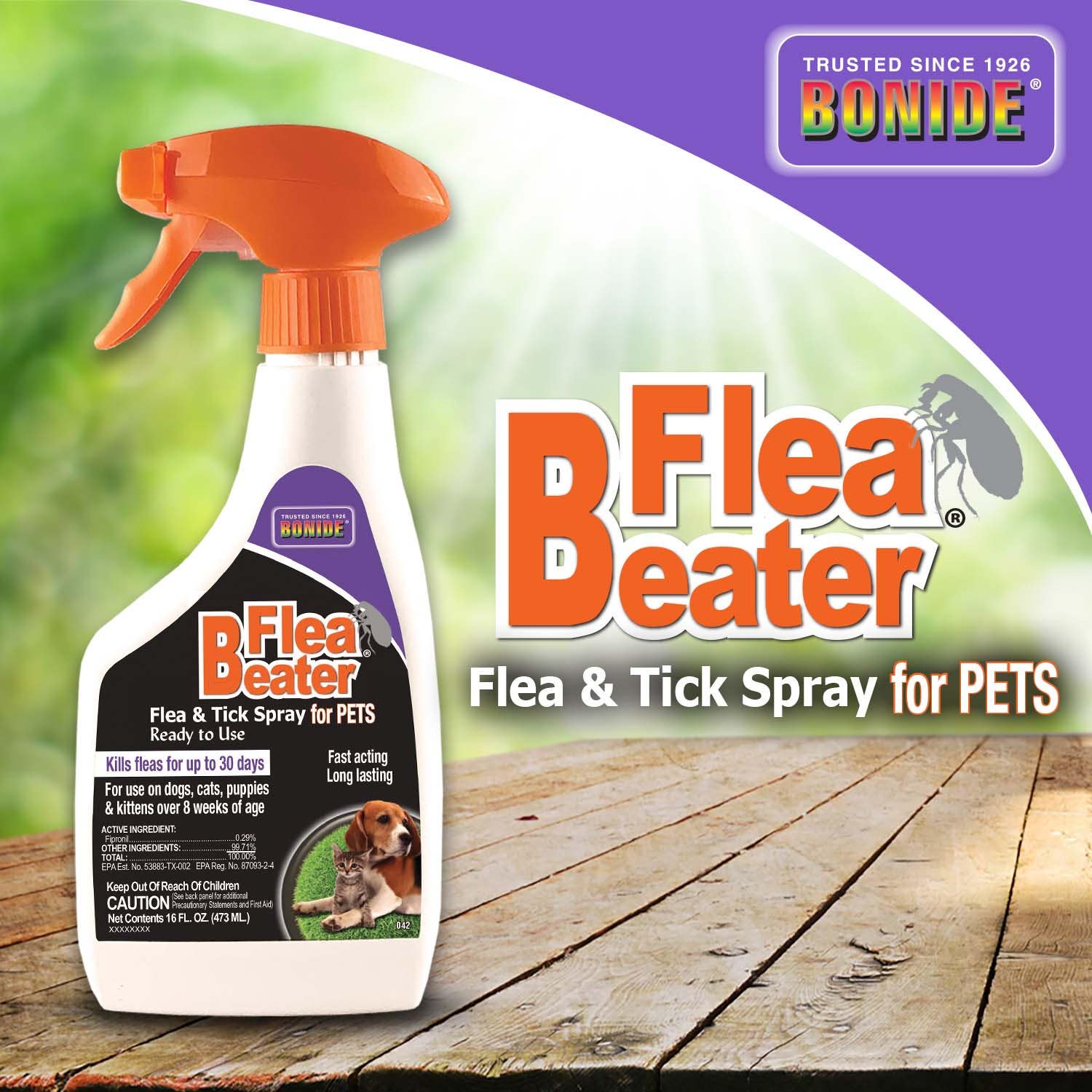 Bonide Products Inc 42 Flea Beater, Flea & Tick Spray for Pets, Ready-to-Use, 1 Pint