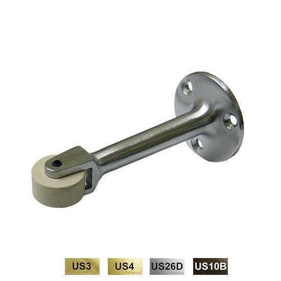 Solid Brass Straight Roller Stop. Base: 2" Diameter, Projection 4 1/4"