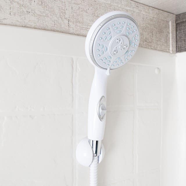 Enjoy longer showers with Camco's ergonomically designed, handheld RV/Marine Shower Head. A handy on/off switch allows you to pause water flow while shampooing, greatly reducing the amount of water used. It features five spray patterns: rain shower (low), rain shower (high), massage with rain shower, massage spray and pause/off. This complete kit includes a 60-inch shower hose, shower head, washers, wall mount and hardware. The shower flex hose features built-in connectors for easy installation to a standard1/2-inch shower arm and the reinforced construction helps eliminate hose kinking. Camco makes quality products for RVing, boating, camping, towing, tailgating, and grilling that help you take your passion for the outdoors to the next level.