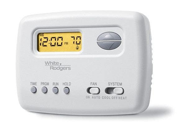 Details: Chatham Brass 1F78-151 Compact Digital Thermostat Heat/Cool Weekday-Weekend Programmable White