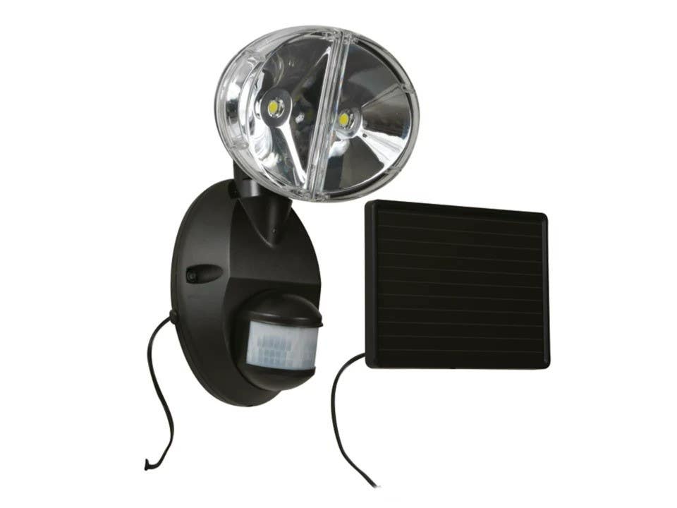 180 degree Motion sensor, solar powered LED motion activated light. Unique design can be used as a twin head or single head depending on application.