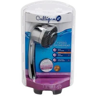 • Culligan HSH-C135 filtered showerhead with 5 spray settings including massage, filters chlorine for softer, cleaner skin and hair.