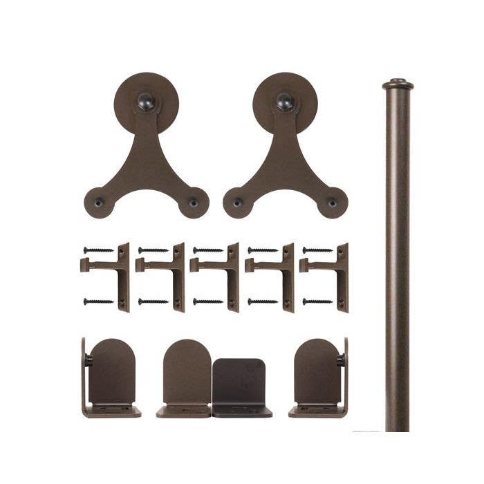 Bring the trendy yet timeless style of our premium-quality rolling barn door hardware to your home! The Quiet Glide Round Rail is by far our most customizable collection - from tastefully rustic to simple and modern. You can create a design to suite any space! With moveable brackets for easy, universal installation and sturdy construction that supports a maximum recommended weight of 250 lbs., the Quiet Glide Round Rail hardware will be a practical and stylish addition to your home.