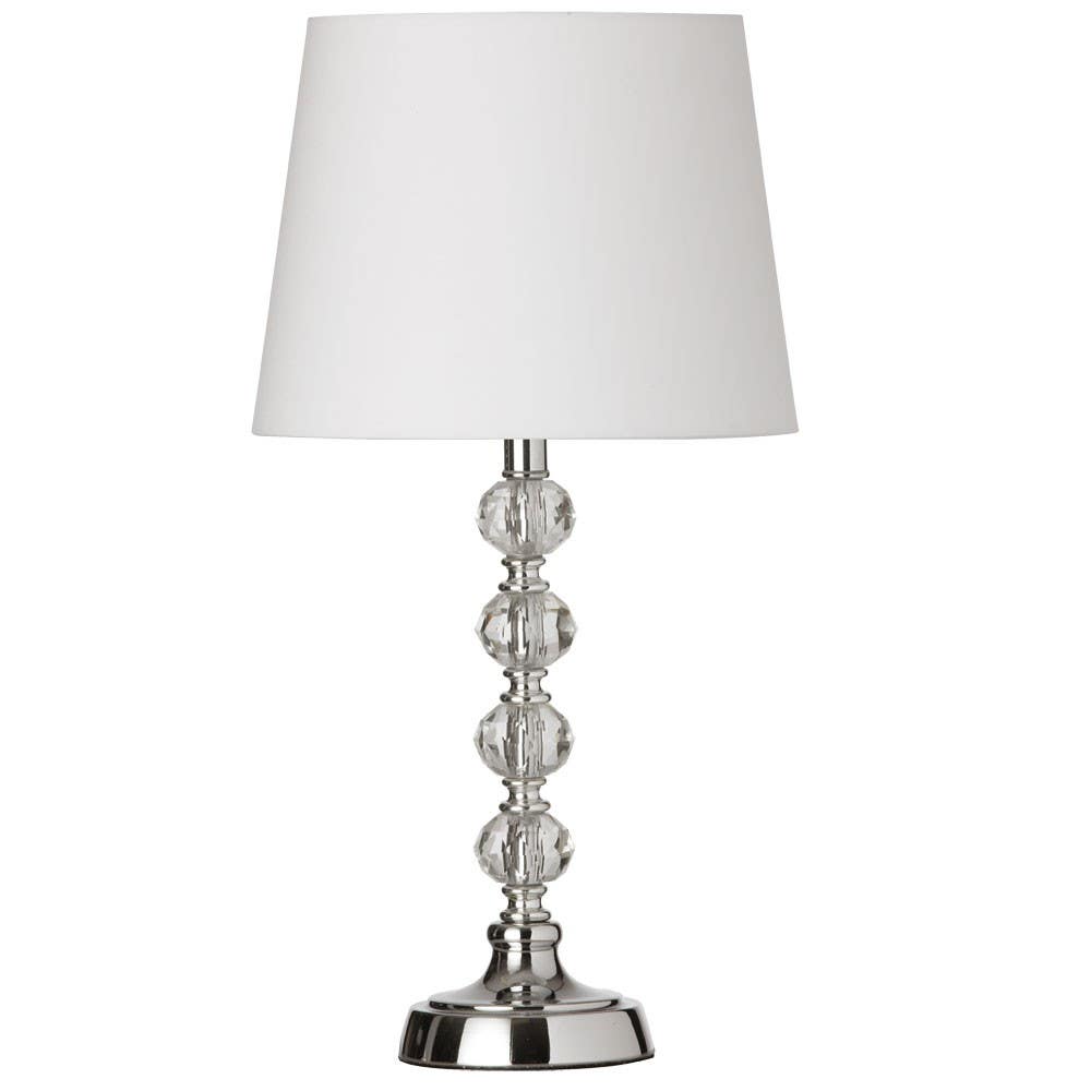Details: Dainolite C13T 1 Light Crystal Table Lamp, Polished Chrome, White Shade