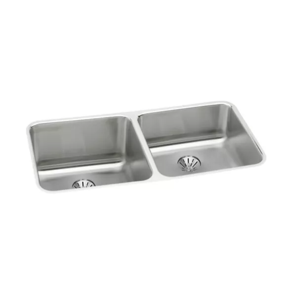 Elkay ELUH311810 Lustertone Classic Stainless Steel 30-3/4" x 18-1/2" Equal Double Bowl Undermount Sink w/ Perfect Drain
