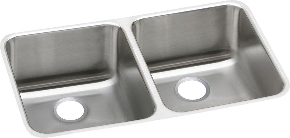 Details: Elkay ELUH311810R Gourmet (Lustertone) Stainless Steel Double Bowl Undermount Sink