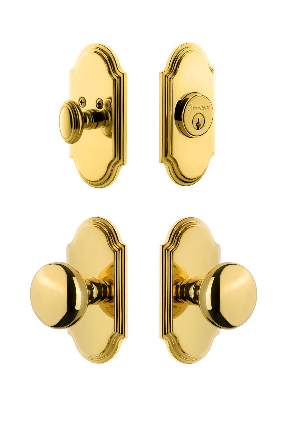 Grandeur Arc Plate w/ Fifth Avenue Knob & Matching Deadbolt