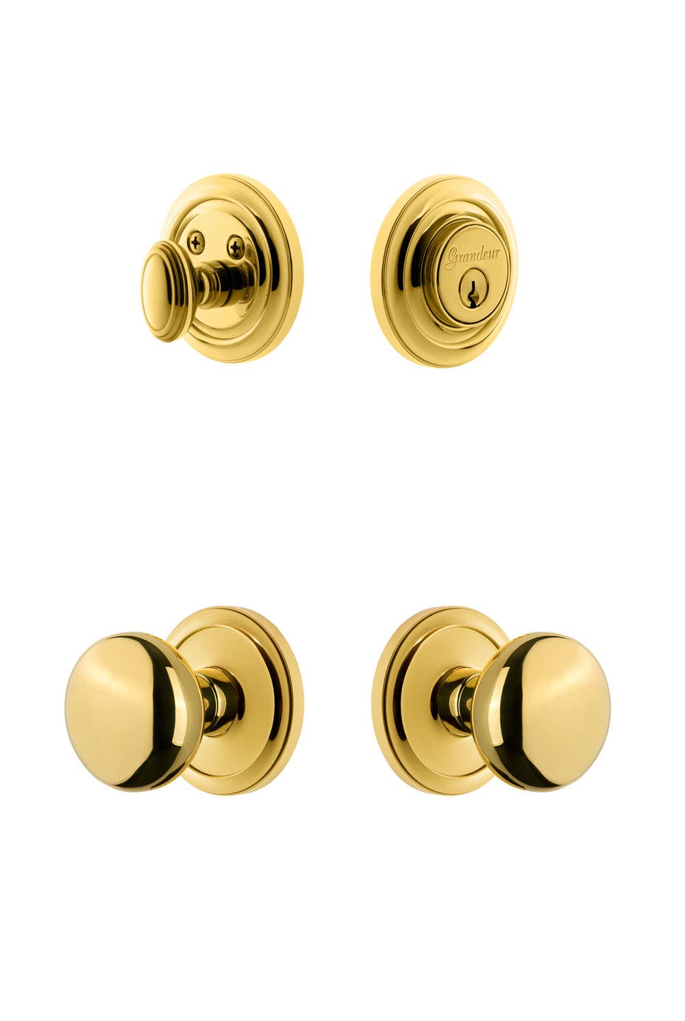 Grandeur Circulaire Rosette w/ Fifth Avenue Knob & Matching Deadbolt
