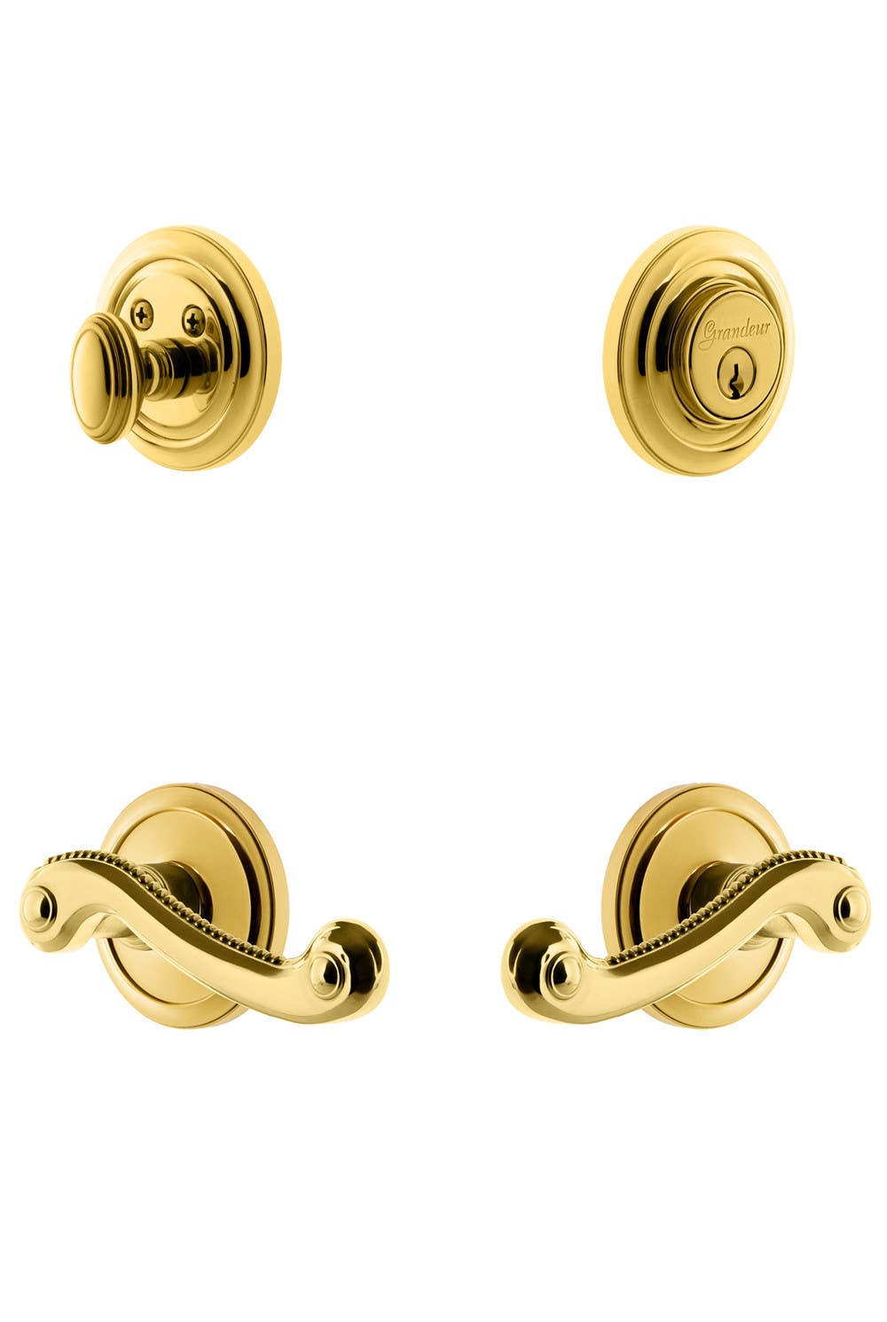 Grandeur Circulaire Rosette w/ Newport Lever & Matching Deadbolt