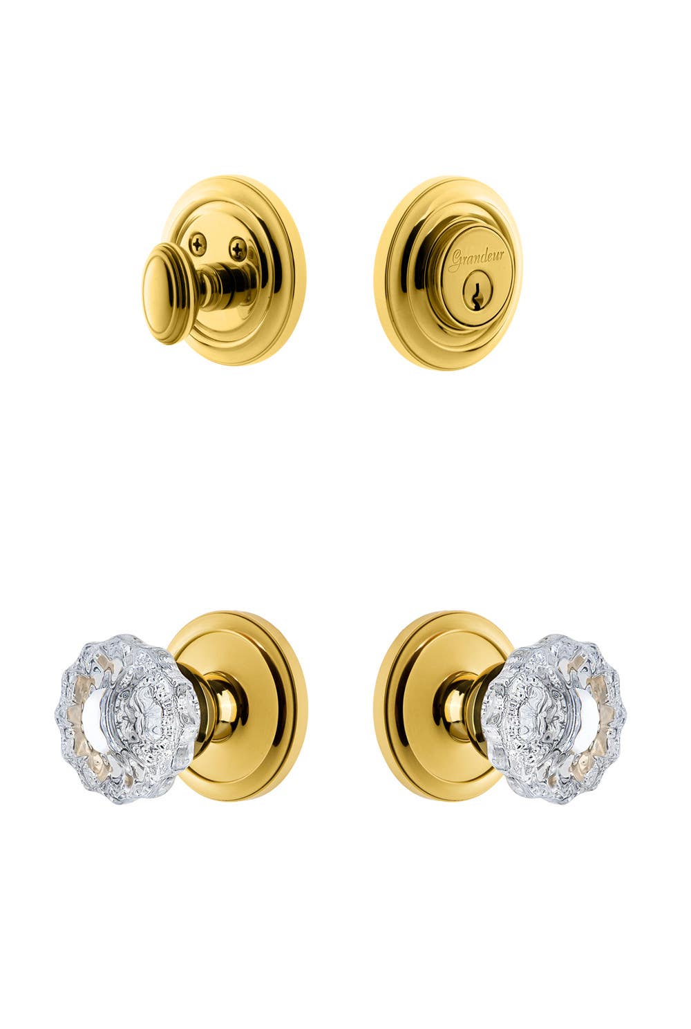 Grandeur Circulaire Rosette w/ Versailles Crystal Knob & Matching Deadbolt