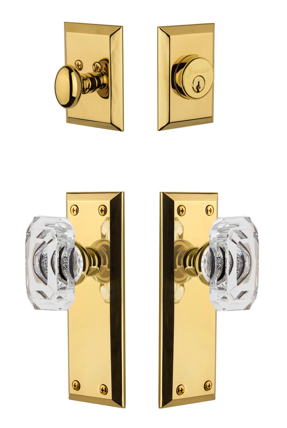 Grandeur Fifth Avenue Plate w/ Baguette Crystal Knob & Matching Deadbolt