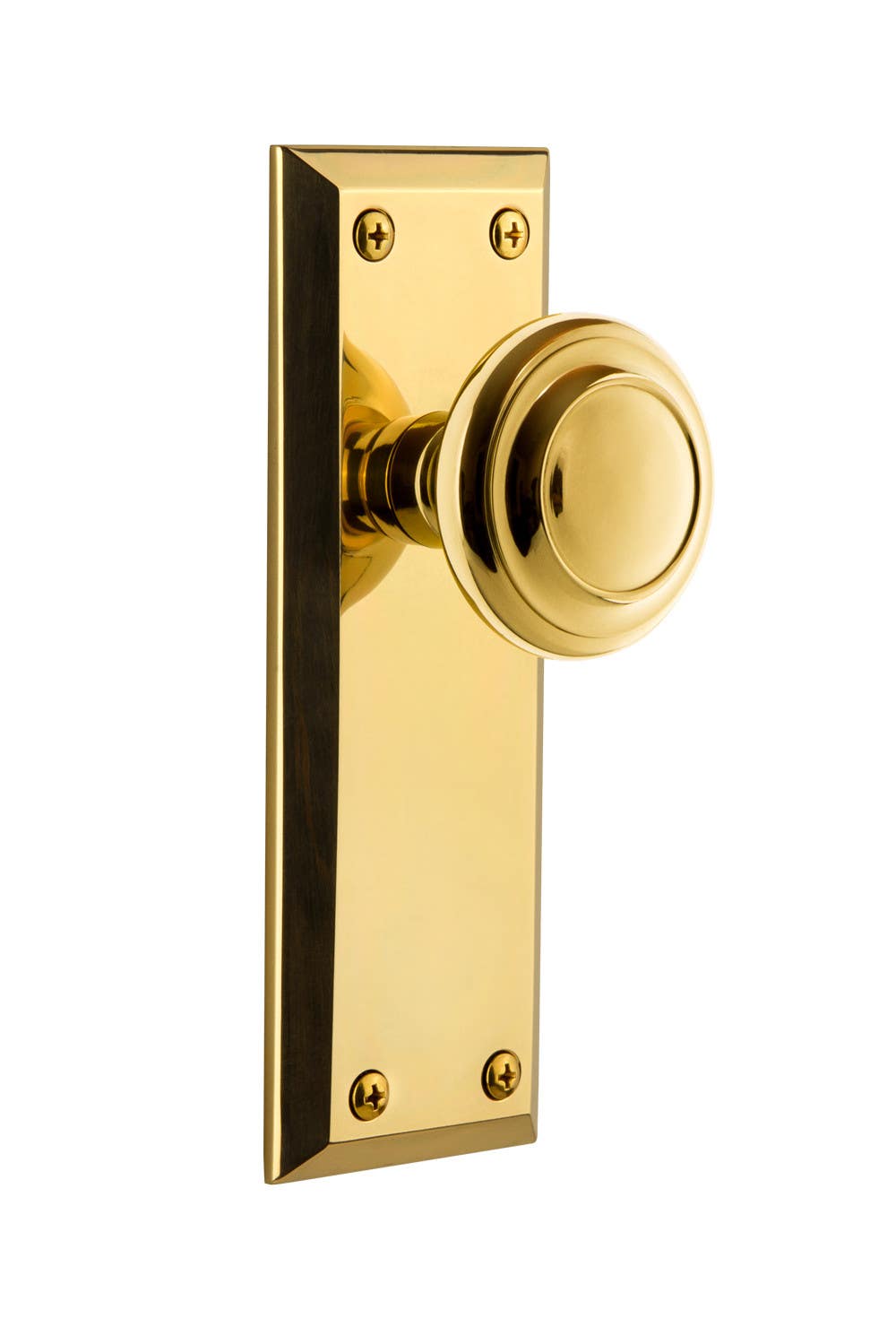 The crisply tailored look of the Fifth Avenue Plate has a universal appeal that works well with almost any home. Add the crisp lines of the Circulaire knob to speak of immaculate craftsmanship, while conveying a sense of modernity. All Grandeur products are created from solid (not plated) forged brass.