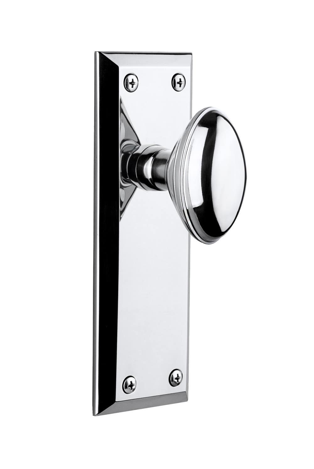 Door knob and chosen plate for both sides of door, latch mechanism, standard spindle, strike plate and mounting screws