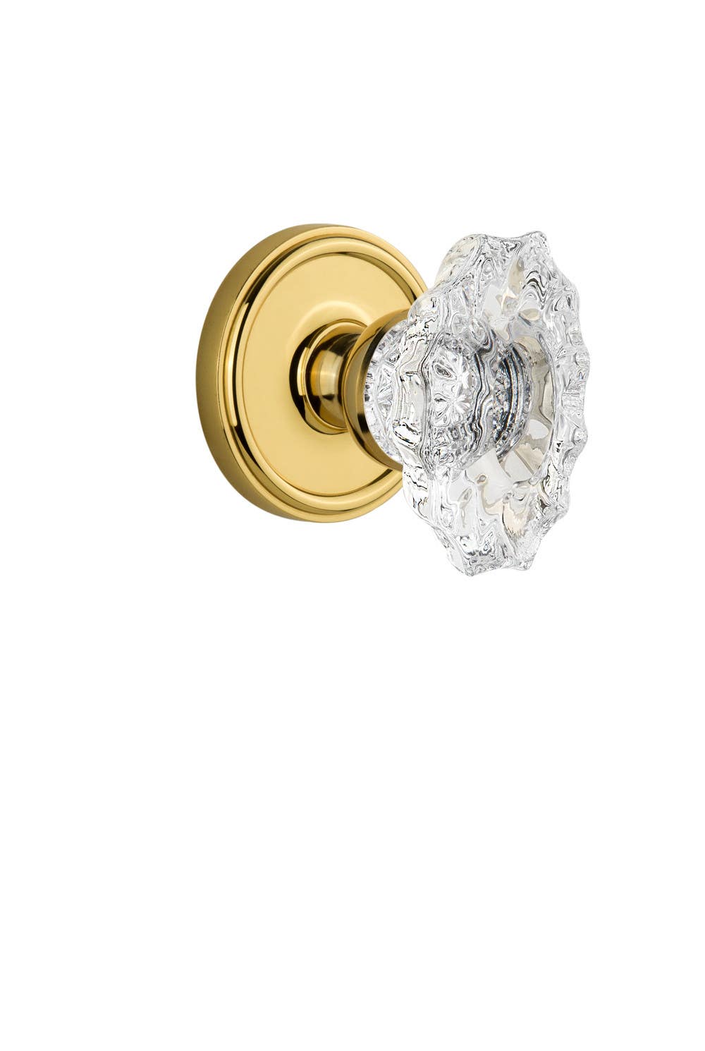 Universally chosen as an expression of tasteful elegance, the Georgetown captures a discrete, yet stately look. Pair this with the Biarritz Knob, with its distinguished shape and effortless shimmer, this exceptional oval crystal knob adds a statement to any door. All Grandeur knobs are created from 24% lead crystal for unparalleled clarity and beauty, and mounted on a solid (not plated) forged brass base.