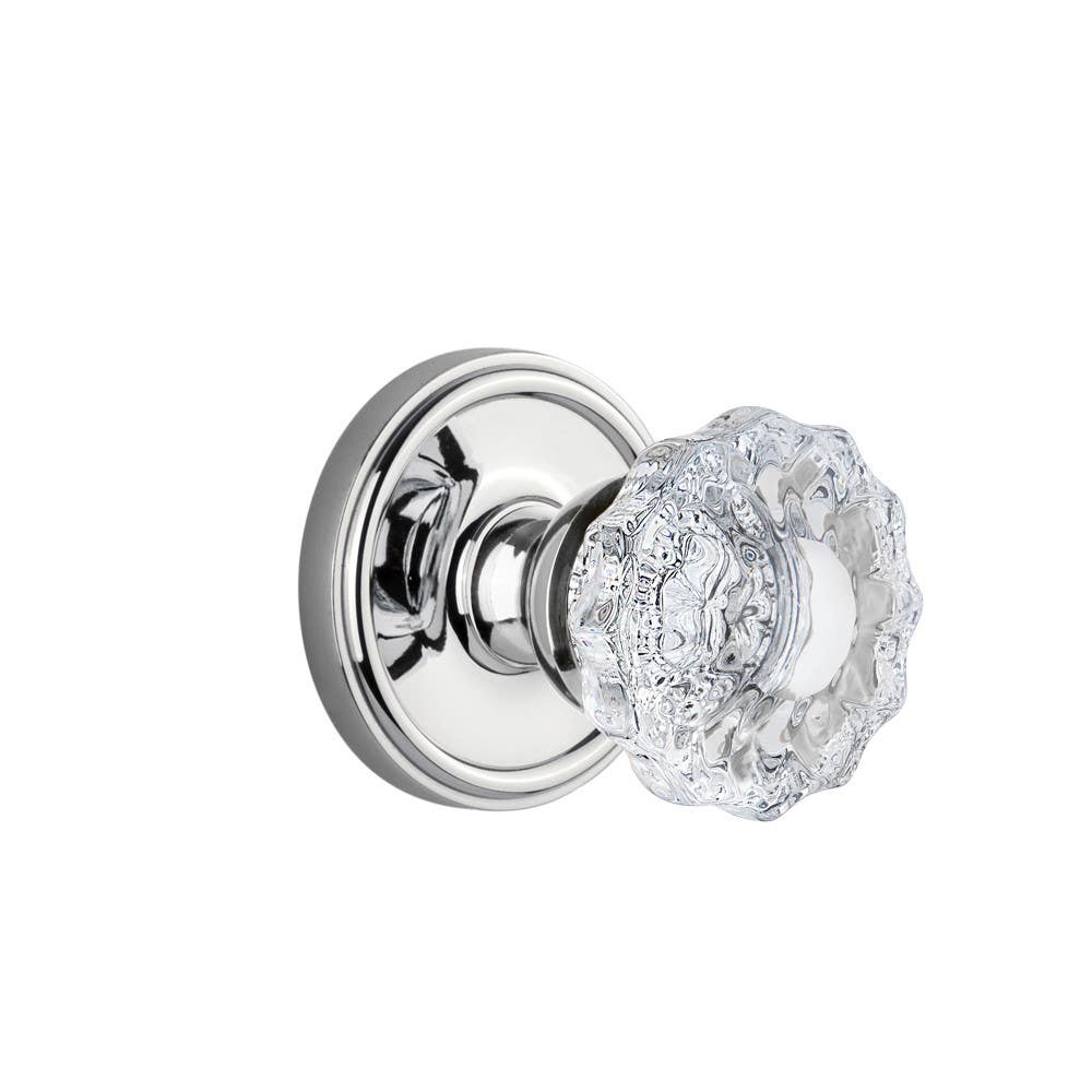 Universally chosen as an expression of tasteful elegance, the Georgetown rosette captures a discrete, yet stately look. Pair this with our Versailles knob, with its smooth center and fluted edges, for an eye-catching look. All Grandeur crystal knobs are created from 24% lead crystal for unparalleled clarity and beauty, and mounted on a solid (not plated) forged brass base.